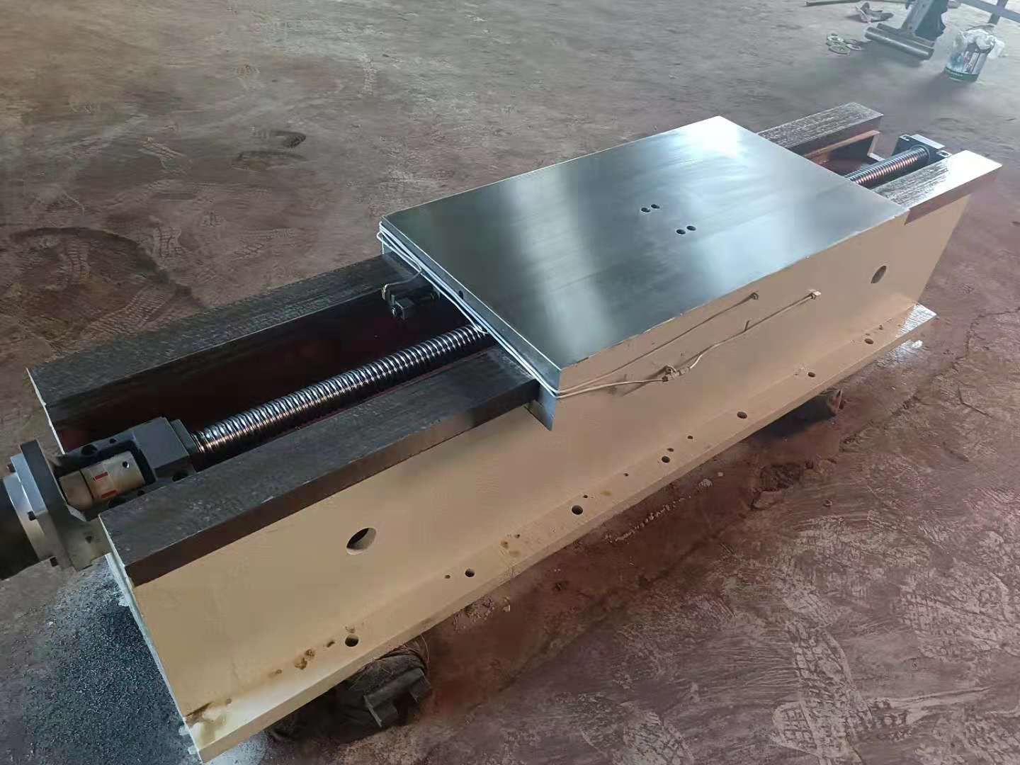 機械滑臺是組合機床,對頭銑床,對頭鉆床以及其他專用機床的提供進給動作。機械滑臺由床身,滑板,絲杠,變速箱等組成。其結構簡單,便于維修。機械滑臺工作原理是滑板在床身上做縱向運動,因其絲杠傳動,再加上變速箱的作用??色@得快慢等多種運行速度。隨著近年來機械工業的發展。在原有的機械滑臺基礎上,演變出數控機械滑臺,即在原來機械滑臺的基礎上。把普通絲杠換成滾珠絲杠,在鑄鐵的導軌面上鑲嵌直線導軌。把變速箱電機換成伺服電機加減速機。使滑臺可以快速進退。利用滾珠絲杠和線軌獲得較高的精度。